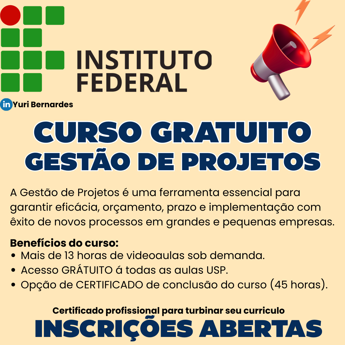 📢 Liberado AGORA! Curso gratuito de Gestão de Projetos do Instituto Federal para quem quer subir de nível no mercado!